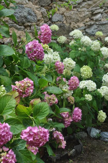 … everywhere; particularly against the stone buildings - the massive pink hydrangeas stand out