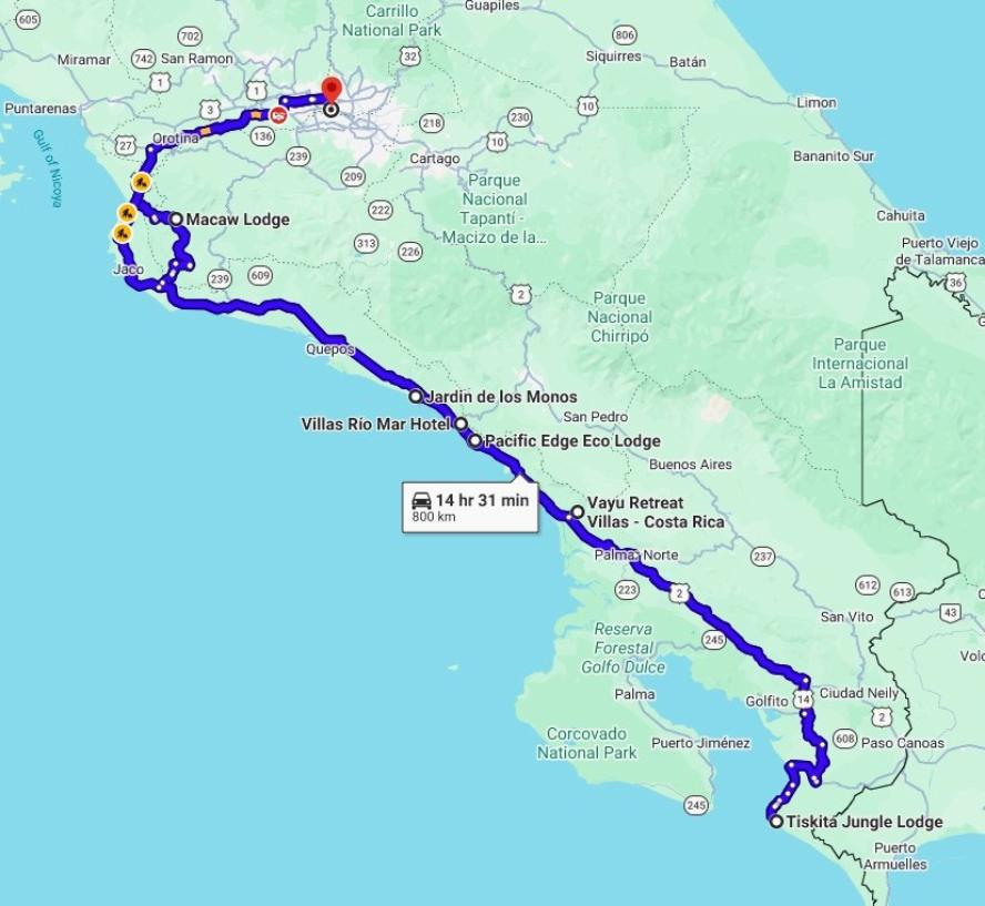 - 1 night at Villas Rio Mar in Dominical due to a booking issue at Macaw Lodge