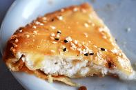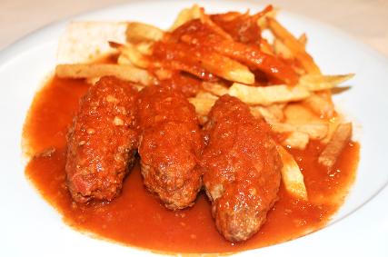 Flisvos' famous chickpeas in the oven. Sausages with leek.