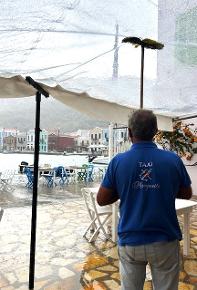 Today was much like yesterday - breakfast on our terrace, a return visit to the medical centre for anohter pain/ muscle relaxant shot; cancelling hotel and car rental reservations, booking the ferry,booking our hotel (Zacosta) in Rodos, and purchasing airline tickets. A surprisingly busy day interrupted by the deafening sound of three military jets buzzing very low over the island.