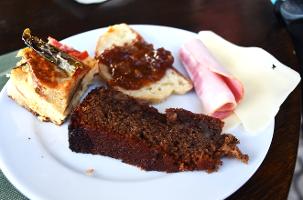 Three breakfast options are provided - the Standard tray, Traditional tray and Super Food tray. Gayle had the standard tray consisting of jam, slow baked sourdough local bread, Icarian honey, cereal / oat flakes, edam cheese, boiled eggs, orange juice, coffee and a seasonal fruit (today figs) while I had the Traditional tray with soft goat cheese and local dried fruits. We ate breakfast in a nice garden area. While the tables were small for the large trays with no one else there, other than a couple of very polite cats, we each had our own table.