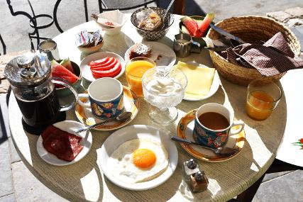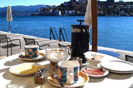 - breakfasts on our balconies at Pyrgos Traditional Villas; Rizos Studios and Asterias Apartments