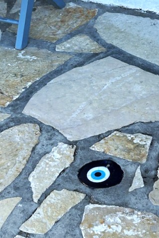 - sitting on our Asteria Apartments' balcony mesmerized by the view of the town below and the sea beyond, especially at night with the sparkling lights