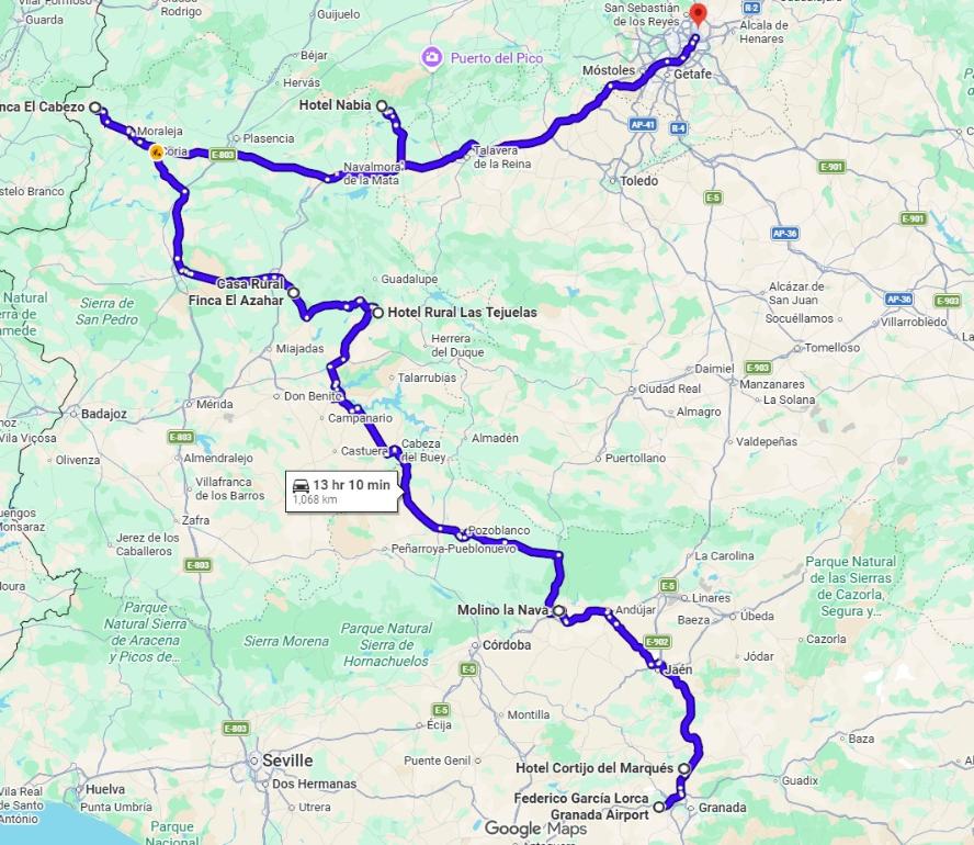 This year's trip will start just north of Granada, then working west and north through Andalucia and Extremadura before swinging back to Madrid.